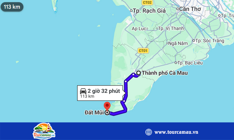 1. Khoảng cách từ TP Cà Mau đi đất mũi